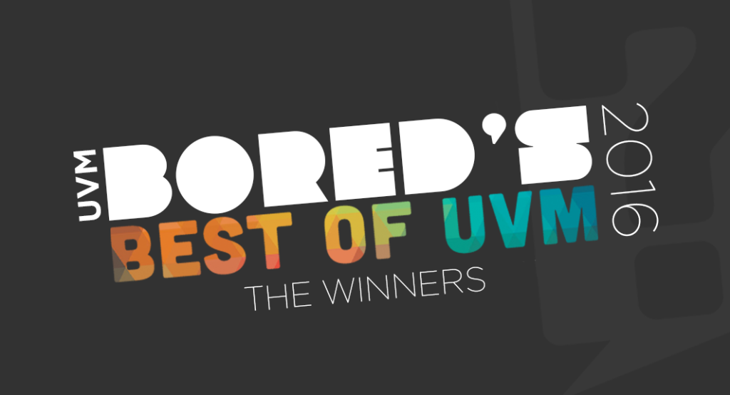 The UVM BORED BEST OF UVM Awards (affectionately known to us as the ‘Bored Awards’) are an annual contest hosted by your friendly neighborhood team from the UVM BORED Calendar (in case you missed it, that’s us – yay!).