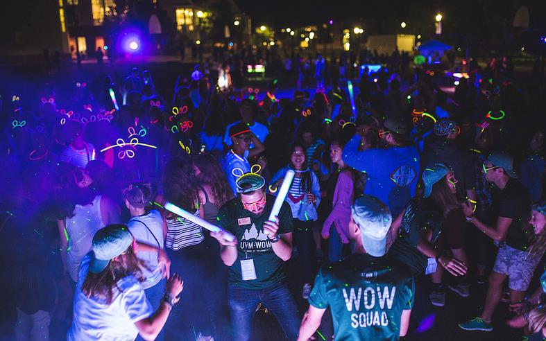 People at a dance party with glow sticks.