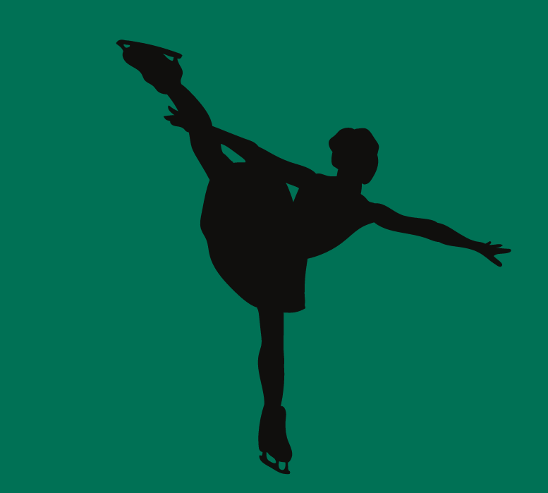 outline of a figureskating with their leg in the air behind them