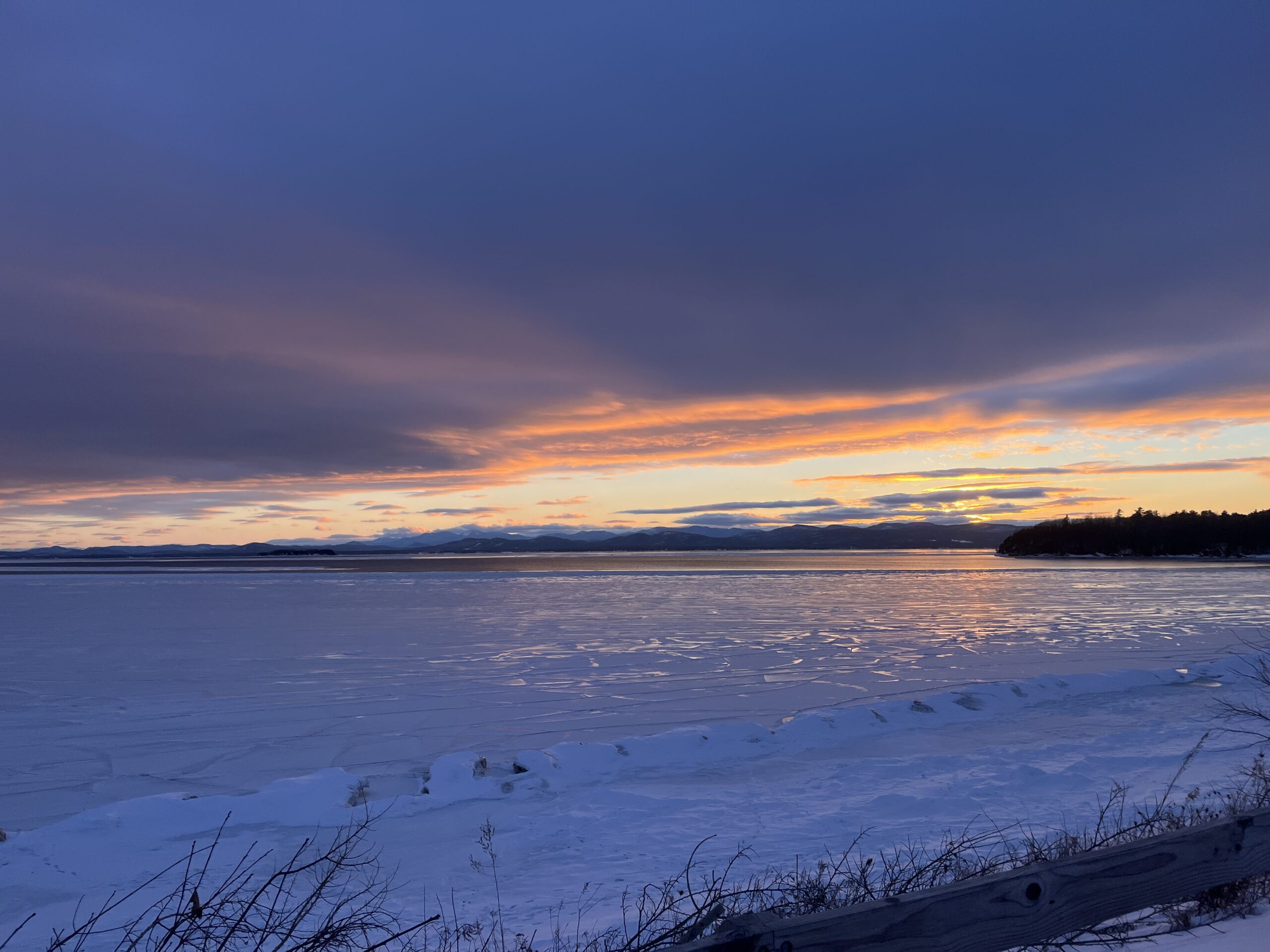 sun sets over lake Champlain